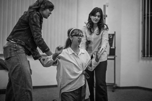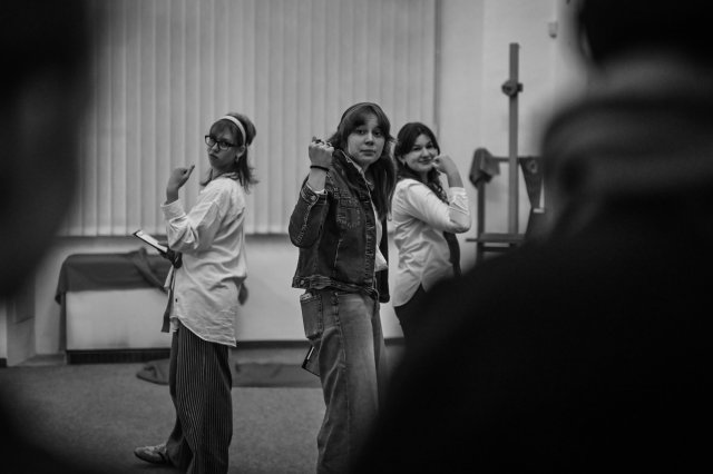 Mohli jsme tak celý víkend v Olomouci zkoušet pod vedením režisérky a umělecké šéfové Naivního divadla Liberec Michaely Homolové, jejíž inscenace získali i Cenu Thálie (Červený balónek).